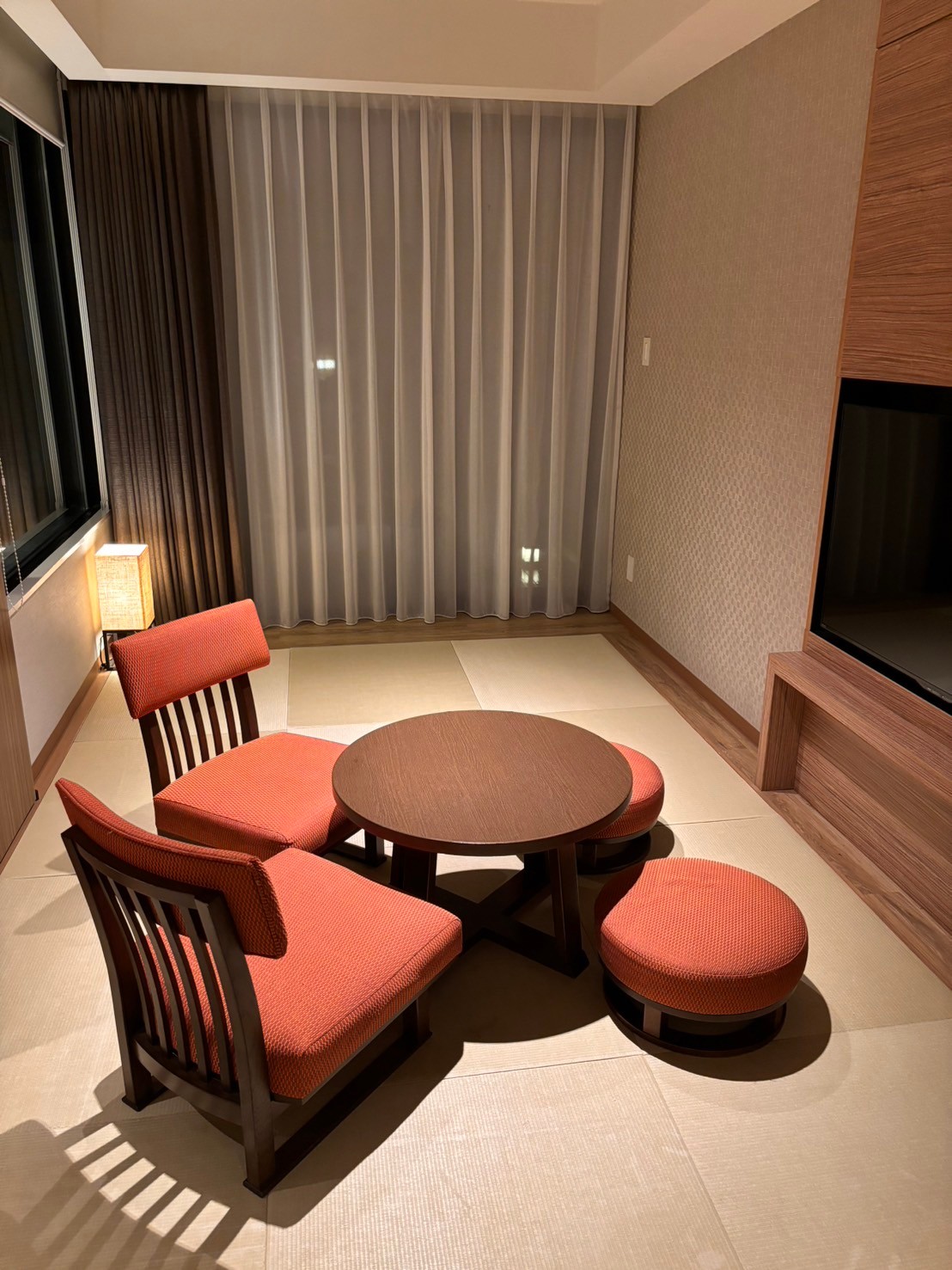 今回宿泊したのはノースウィング温泉露天風呂付プレミアルーム ツインでした。リビングスペースが畳になっており、訪れた誰もがすぐにくつろげるような居心地の良さがありました。